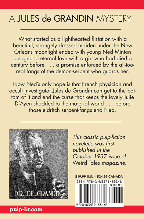 Ned's only hope is that French physician and occult investigator Jules de Grandin can get to the bottom of it and end the curse that keeps the lovely Julie d'Ayen shackled to the material world — before the eldritch serpent's fangs end Ned. . . .